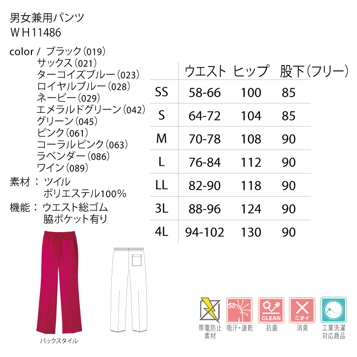 [ホワイセル] WH11486 男女兼用パンツ 1/2 ※別色は関連商品にございます。