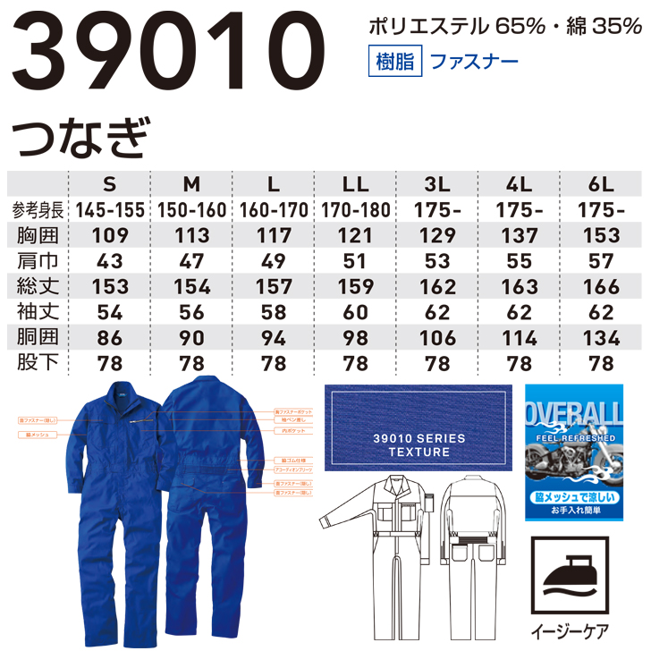 脇メッシュで蒸れにくい!定番素材のT/Cつなぎ!