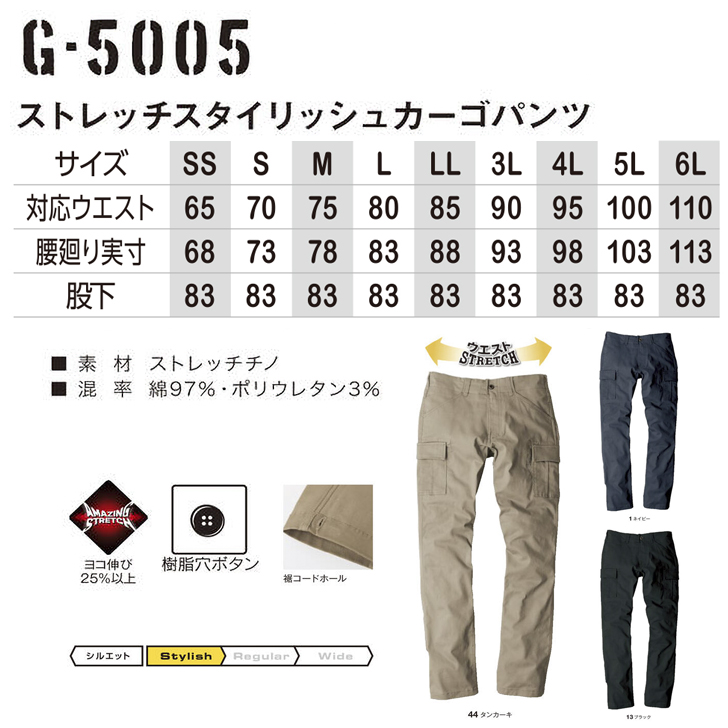 [コーコス] G-5005 ストレッチスタイリッシュカーゴパンツ