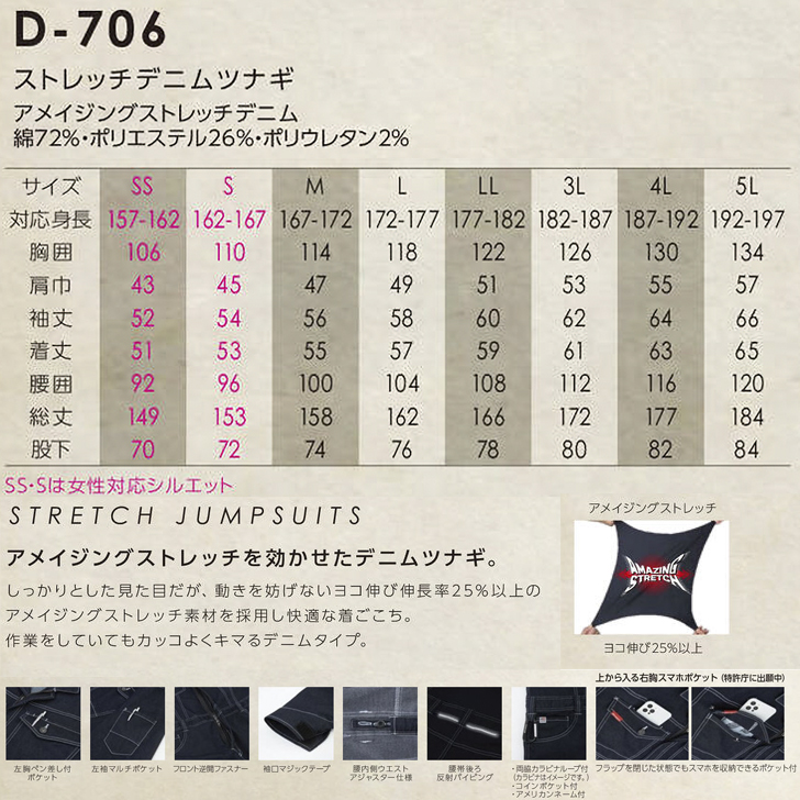 [ディッキーズ] D-706 ストレッチデニムツナギ