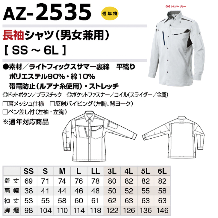 [アイトス] AZ-2535 長袖シャツ(男女兼用)(薄地)