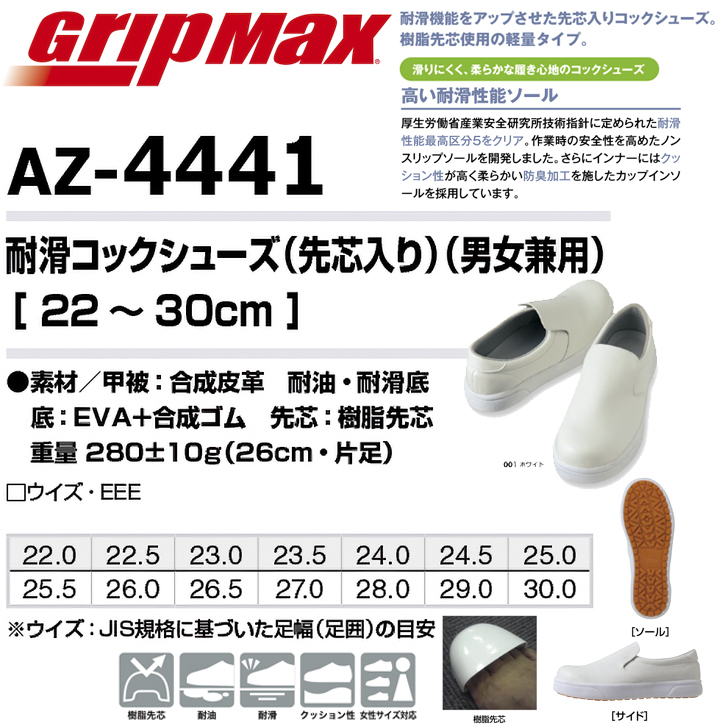 [アイトス] AZ-4441 耐滑コックシューズ(先芯入り)(男女兼用)