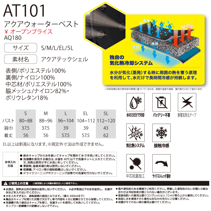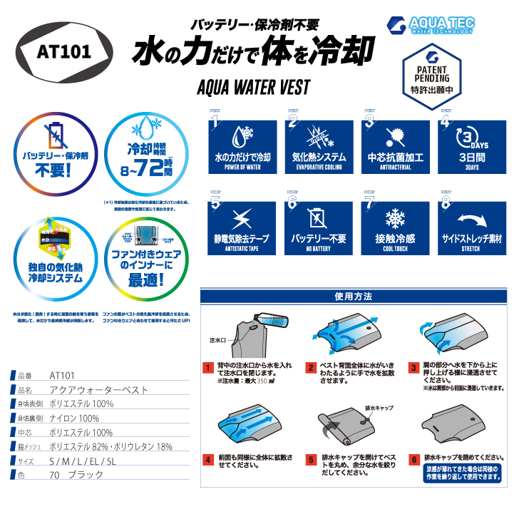 バッテリー・保冷剤不要 水の力だけで体を冷却 AQUA WATER VEST